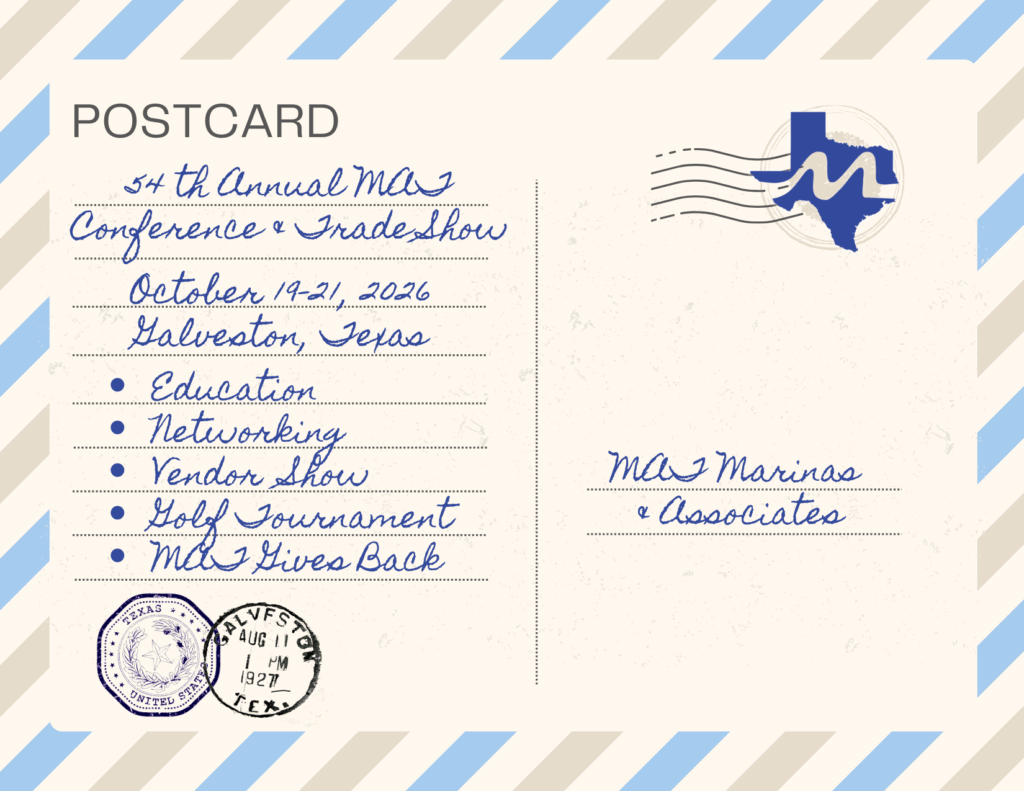 The Marina Association of Texas (MAT) is a non-profit, volunteer-led organization representing marinas across Texas’ inland and coastal waters, along with associate members who provide products and services to marinas.
